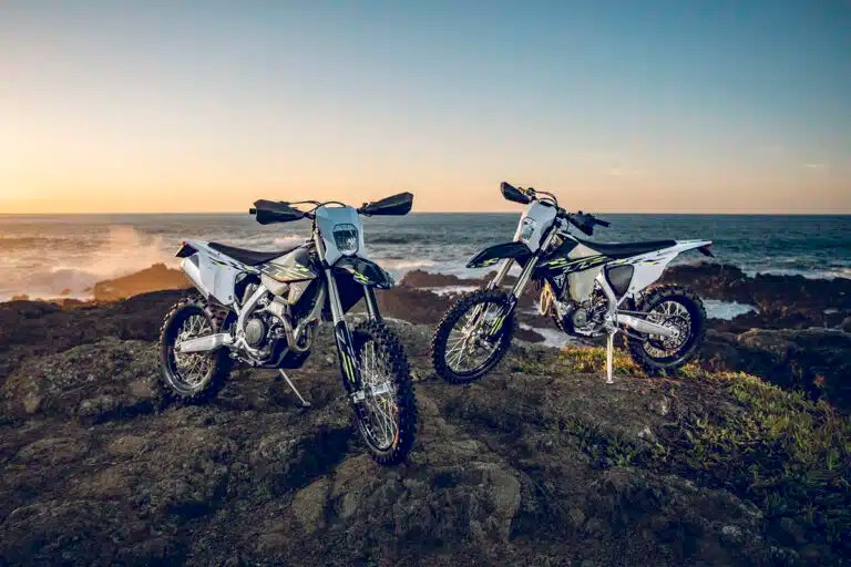 Les TF 250-E et TF 450-E sont dérivées des modèles cross TF 250-X et TF 450-X, mais avec une vraie homologation routière : phare, clignotants, klaxon, compteur digital, plaque, etc.